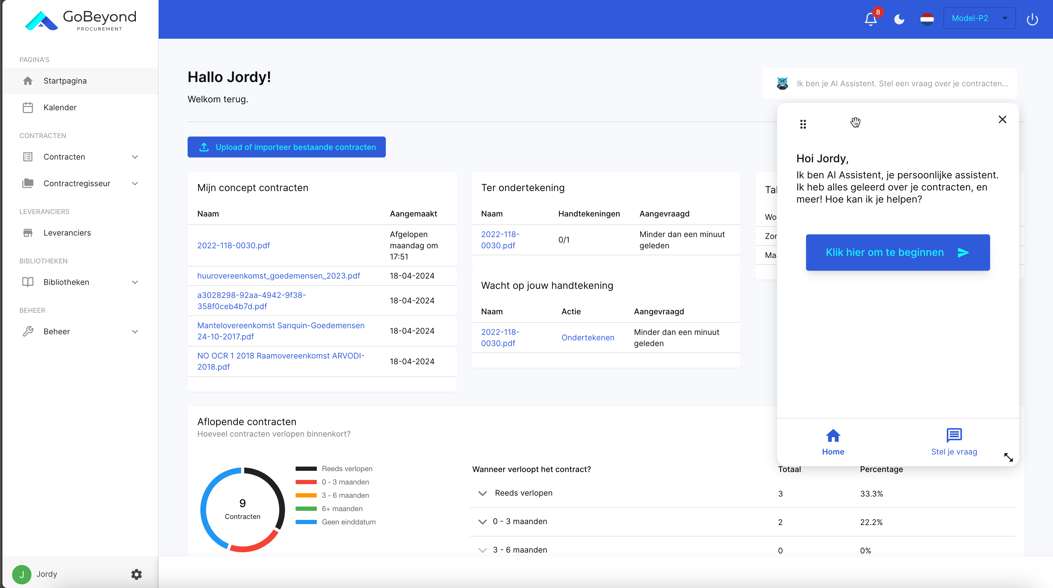 Onze AI contractmanager is getraind om nauwkeurige en relevante informatie te verstrekken. Het is echter altijd belangrijk om kritisch te blijven en waar nodig aanvullend onderzoek uit te voeren en contracten zelf door te lezen.